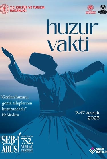 Hz. Mevlâna'nın 752. Vuslat Yıldönümü Uluslararası Anma Törenleri (Şeb-i Arûs), 07 - 17 Aralık 2025 tarihleri arasında Konya Mevlâna Kültür Merkezi Semâ Salonu'nda icra edilecektir.